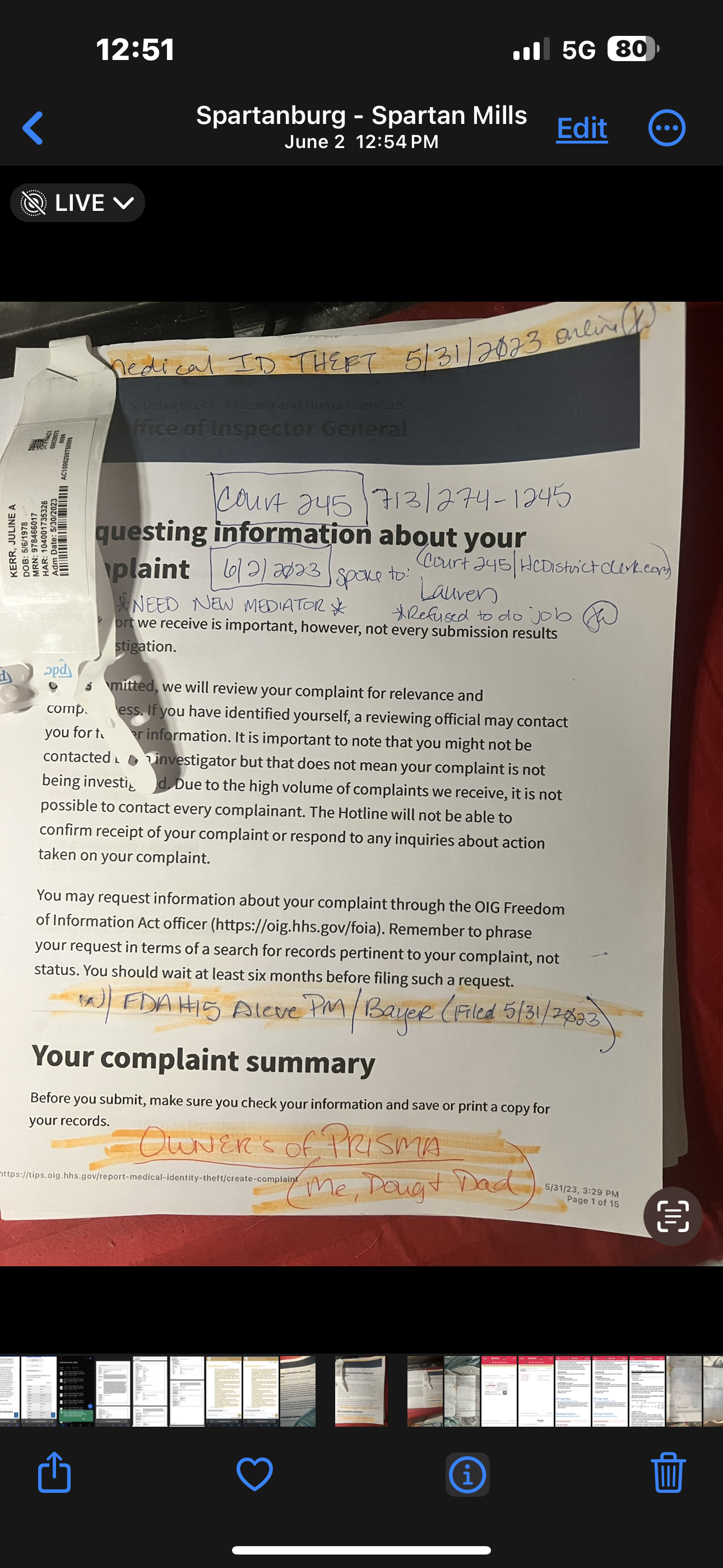 And I received eight MEDICARE fraud case file numbers! DOUG HAS 1 because of my 8!